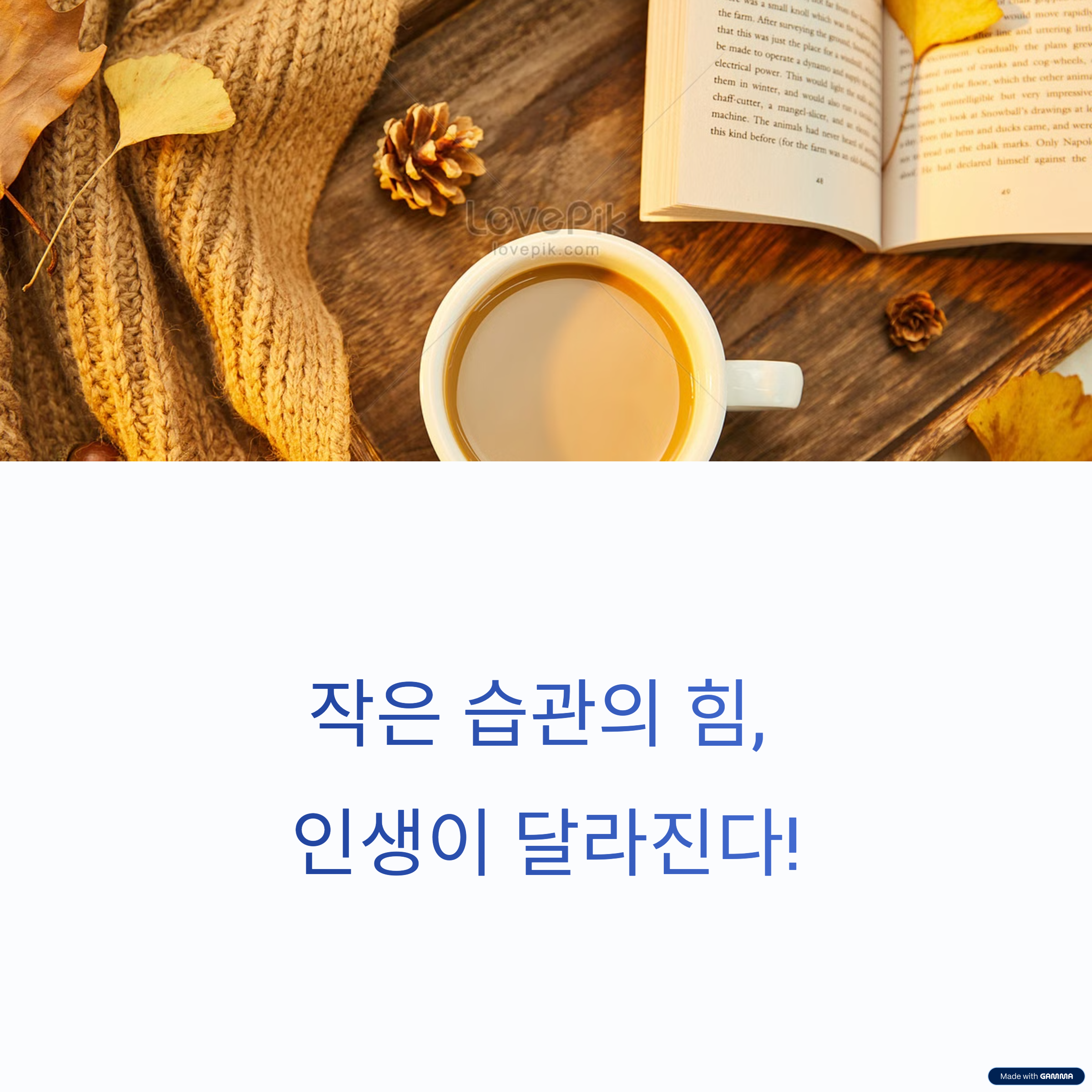 | 작은 행동을 매일 반복하여 큰 변화를 만듦 | 삶의 지혜와 실천법을 담은 책들 | 지속적인 노력으로 목표를 달성 |