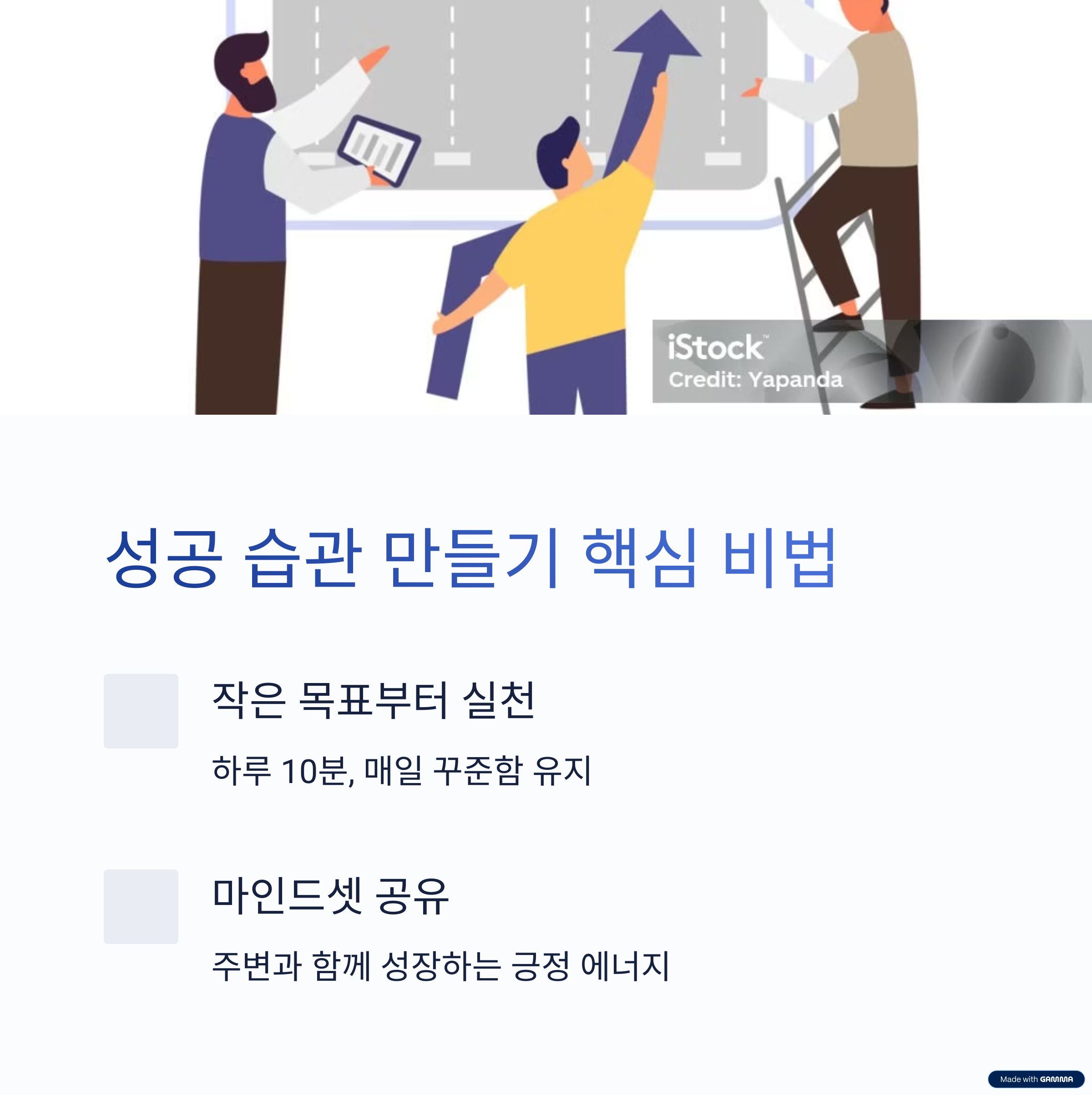 | 성공 습관 | 매일 작은 행동으로 큰 변화를 만드는 비법 |